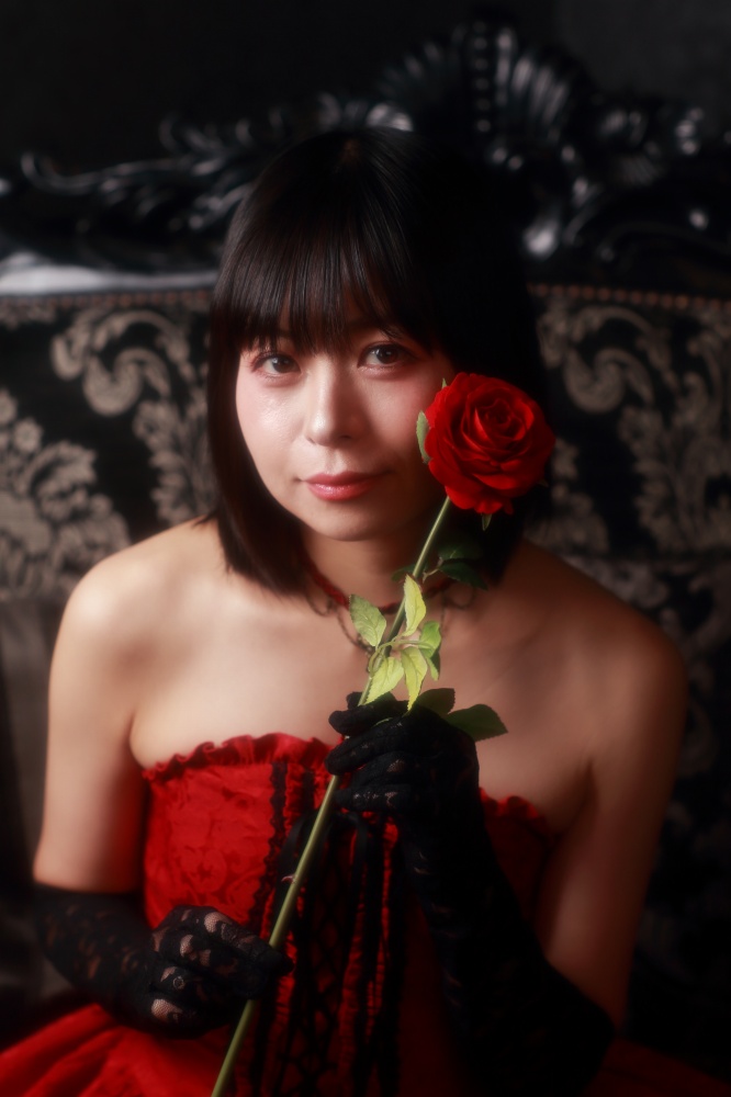 | 衣裳をレンタルしてスタジオを借りてメイクさんにもお願いした。こんな成美ちゃんを見るのは初めてで、メイクさんにお願いした甲斐があった。 前半はカルメンのイメージで赤い薔薇とともに。後半はゴスロリで、背景に合わせて赤紫のカラーフィルターを使ってシャドウ部に色をつけてみた。 撮影中は照明と成美ちゃんの表情にばかり気が行っていて、せっかくハットをかぶっているのに、逆側からばかり撮っていたのは、後で気づいた。 |